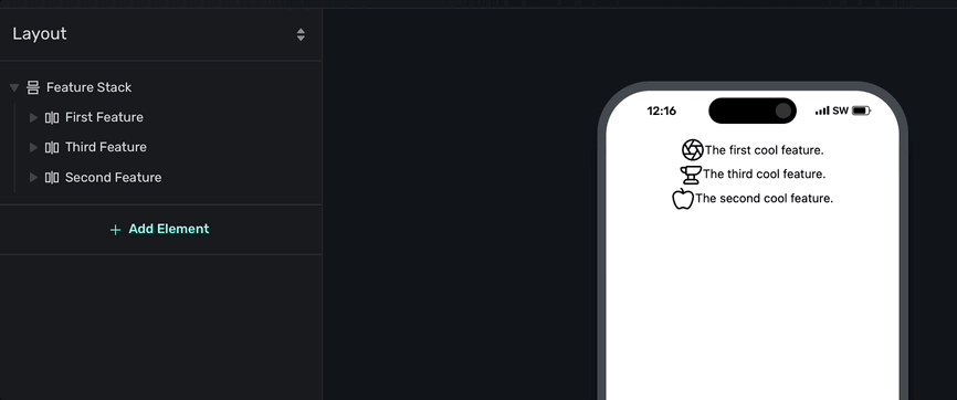 Reordering and adding components as children is all done via the Layout tab. It'll always represent the current hierarchy of your paywall's components.