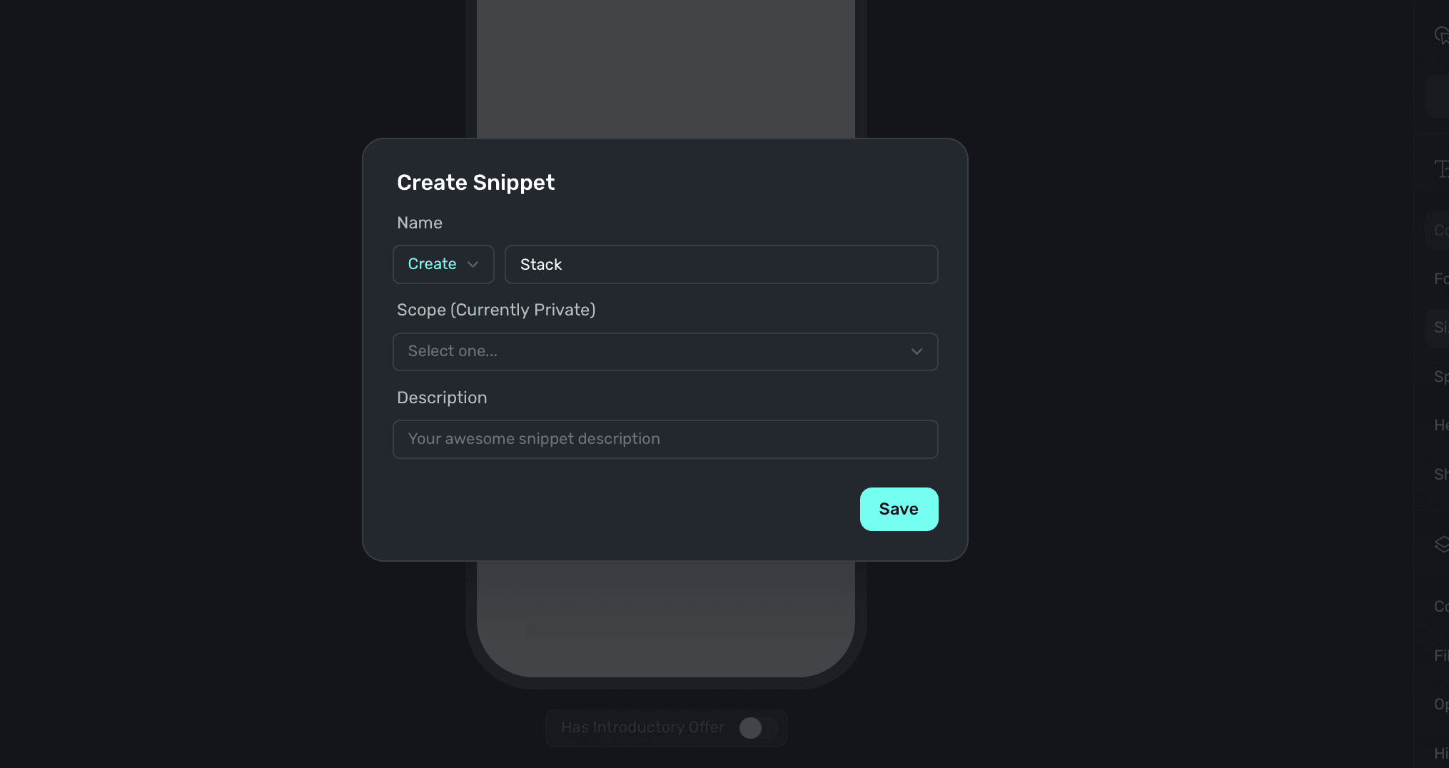 Snippets allow you to aggregate one or more components together to reuse. For example, if you have a stack component with an icon and a text label, you could group that together to use as a component either in the current paywall, or another one later.